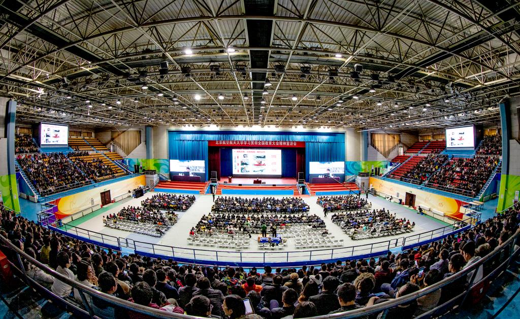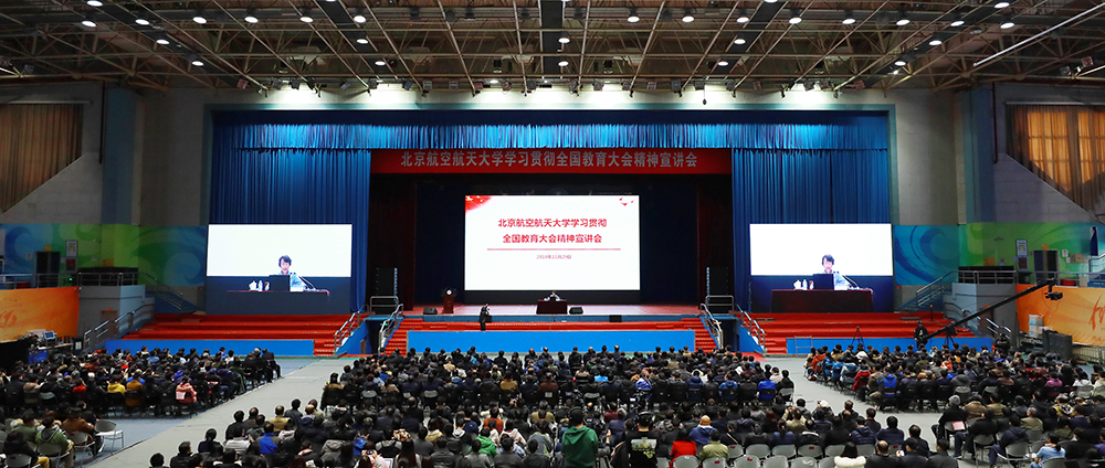 北航新闻网11月29日电(记者 余敏/文 邸白鹭 宋超/摄影)11月29日下午,beet365在公司路校区体育馆召开全校教师大会,深入学习贯彻全国教育大会精神。教育部“百人宣讲团”成员、北航党委书记曹淑敏为全校3100余名教职工宣讲了全国教育大会精神。会议由公司党委副书记程基伟主持。