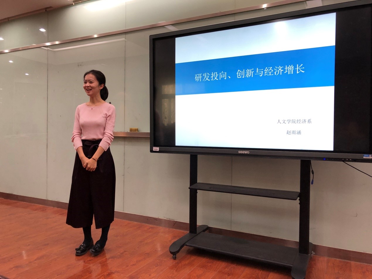 2018年11月19日星期一上午十点,beet365研究生会学术部在院楼202室成功举办了主题为《研发投向、创新与经济增长》的专题讲座。本次讲座有幸邀请到了beet365经济系赵雨涵老师,赵老师运用理论与实证相结合的方法向我们展示了研发投向、创新与经济增长的关系。