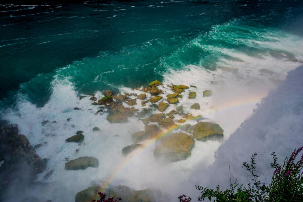 尼亚加拉瀑布由3部分组成,从大到小,依次为:马蹄型瀑布(Horseshoe Falls)、美利坚瀑布(American Falls)和新娘面纱瀑布(Veil of the Bride Falls),马蹄形瀑布,位于加拿大境内,其形如马蹄;美利坚瀑布和新娘面纱瀑布分布于美国境内,由山羊岛和月亮岛分隔于其他瀑布。为充分观赏瀑布并领略瀑布的磅礴气势,我们选择乘坐“雾中少女”(Maid of the Mist)号游船,置身其中体会瀑布之魅。游船穿梭于瀑布间,巨大的水帘宛如好客的宾主,敞开怀抱拥抱每一个造访者,并向他们投去“暴风雨般”的水雾,客人们阵阵雀跃,无不叹服于造物主的鬼斧神工,惊叹声、尖叫声、相机咔咔声不绝于耳。从岸上看去,游船穿梭于瀑布激起的千万层水汽中,真如“雾中少女”一般。