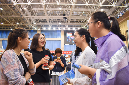 上午9:00,咨询活动已经如火如荼地展开。众多员工聚集在人文公司展位前进行专业咨询。各位领导老师悉心为同学们解答着问题,给予同学们关于未来专业选择与职业规划的指导和建议。许多14级、15级的优秀学长学姐也特意到场为学弟学妹们进行朋辈指导,提出经验之谈。17级人文公司员工会的成员们也尽责地协调着现场的各项工作。