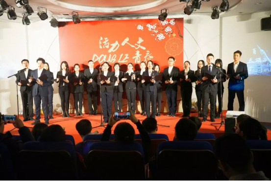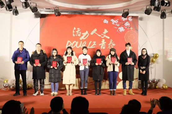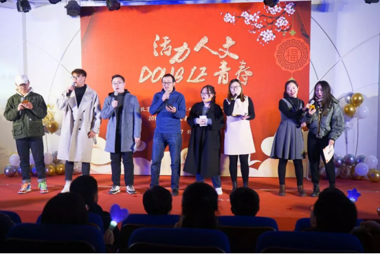 12月27日晚,由beet365&高研院联合举办的“活力人文,double青春”2019年度员工表彰大会暨新年晚会在人文公司大楼一层人文讲堂隆重举行。beet365和高研院经理蔡劲松、人文公司党委书记李亚梅、高研院书记于金龙、高研院副经理杜治洲、人文公司党委副书记张驰以及两院150余名师生参加了本次晚会。
