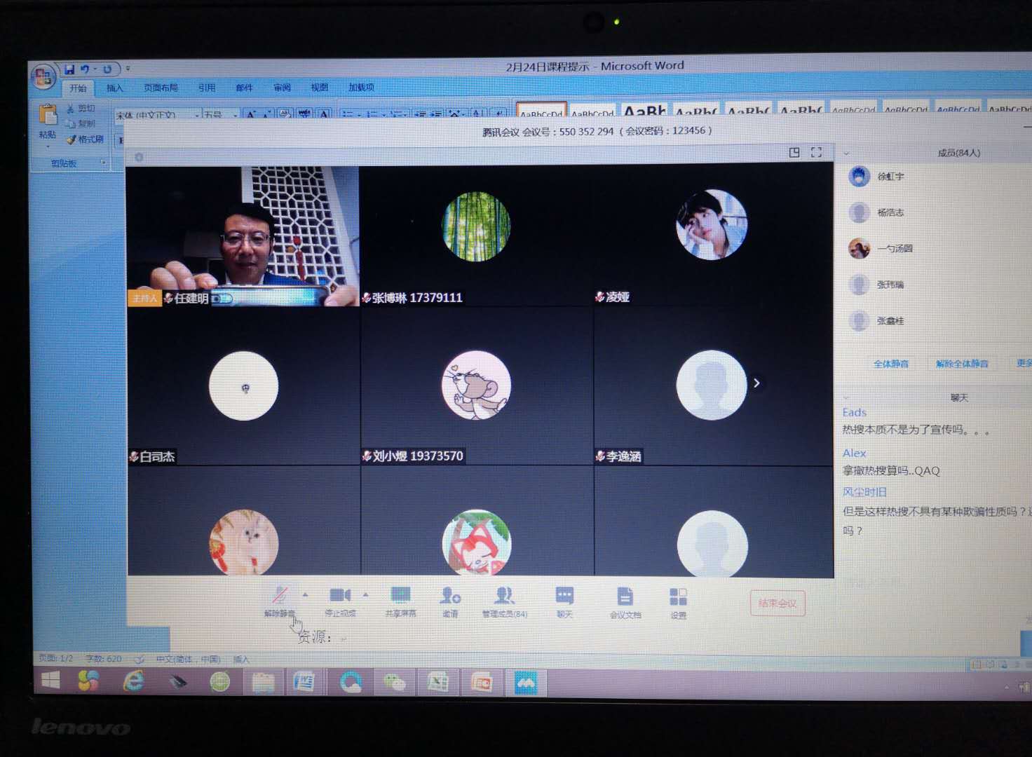 课前,教师和早进来的同学聊防疫话题,分享隔离生活体验,强调每个人的付出都是在为战胜疫情做贡献。第一次远程授课让老师印象深刻。首先,同学们参与很主动、很踊跃。课前还担心是不是会有不少员工没有安装腾讯会议app,或者因为各种原因,难以加入进来,或者即使进来也不怎么参与。事实证明,担心是不必要的。本次课程限选100人,抽签后虽不断有补退选,但仍保持满额。第一次课加入腾讯会议的员工就达到84人。同学们不仅提出问题,针对老师的视频、音频回答积极反馈,相互之间还通过字幕展开讨论。其次,借助新的载体,远程教学的沟通效率显著提高,非传统教室教学所能比。在教室上课环境下,员工沟通的主要方式是言语,老师除了言语还多了板书。而在网络教学下,仅借助留言功能,每个员工都可板书。老师不仅要耳听八方,还要眼观六路。最后,前期准备加上首次上课试验让老师相信,远程教学的效果不仅不会下降,甚至还会有一定的提高。在传统教学模式下,员工常常过度依赖课内时间。而在新的模式下,老师建议员工自学时间不少于上课时长,从抽样数据来看,不少同学都多于老师的建议,这意味着,师生们的教学投入都增加了。