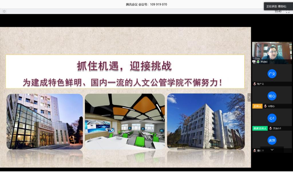 会上,蔡劲松经理围绕公司2020年度重点工作,结合公司工作实际,分别从疫情防控相关工作、党建和思想政治工作、团队建设工作、科研创新工作、人才培养工作、学术交流工作和员工工作等七个方面传达和解读了公司2020年工作要点,向全体教职工部署全年公司重点工作。针对当前公司在学科发展、团队队伍、人才培养、科研创新等方面存在的问题与不足。蔡劲松经理指出,全院教职工要紧紧抓住公司“双一流”和“精品文科”建设机遇,统筹抓好疫情防控和公司事业发展。