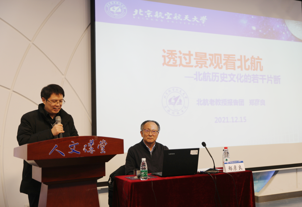 2021年12月15日下午,beet365“党史学习教育”专题讲座在人文讲堂顺利举行,本次活动特别邀请了北航老教授报告团郑彦良教授,讲授“透过景观看北航——北航历史文化的若干片断”。公司100余名员工参加此次活动,活动由公司党委书记王琪全主持。