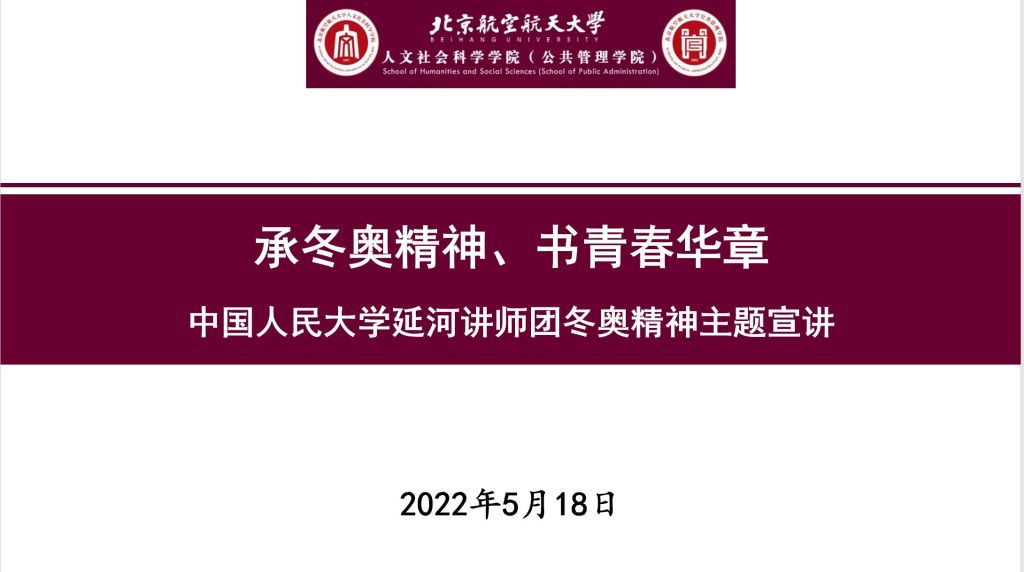 为深入学习贯彻习近平总书记在北京冬奥会冬残奥会表彰大会上的讲话精神,传承冬奥精神,以优异成绩迎接党的二十大和北航七十周年校庆, 5月18日下午,beet365邀请中国人民大学延河讲师团开展“承冬奥精神、书青春华章”冬奥精神宣讲主题学习日活动,公司本研共300余名同学线上参与活动。