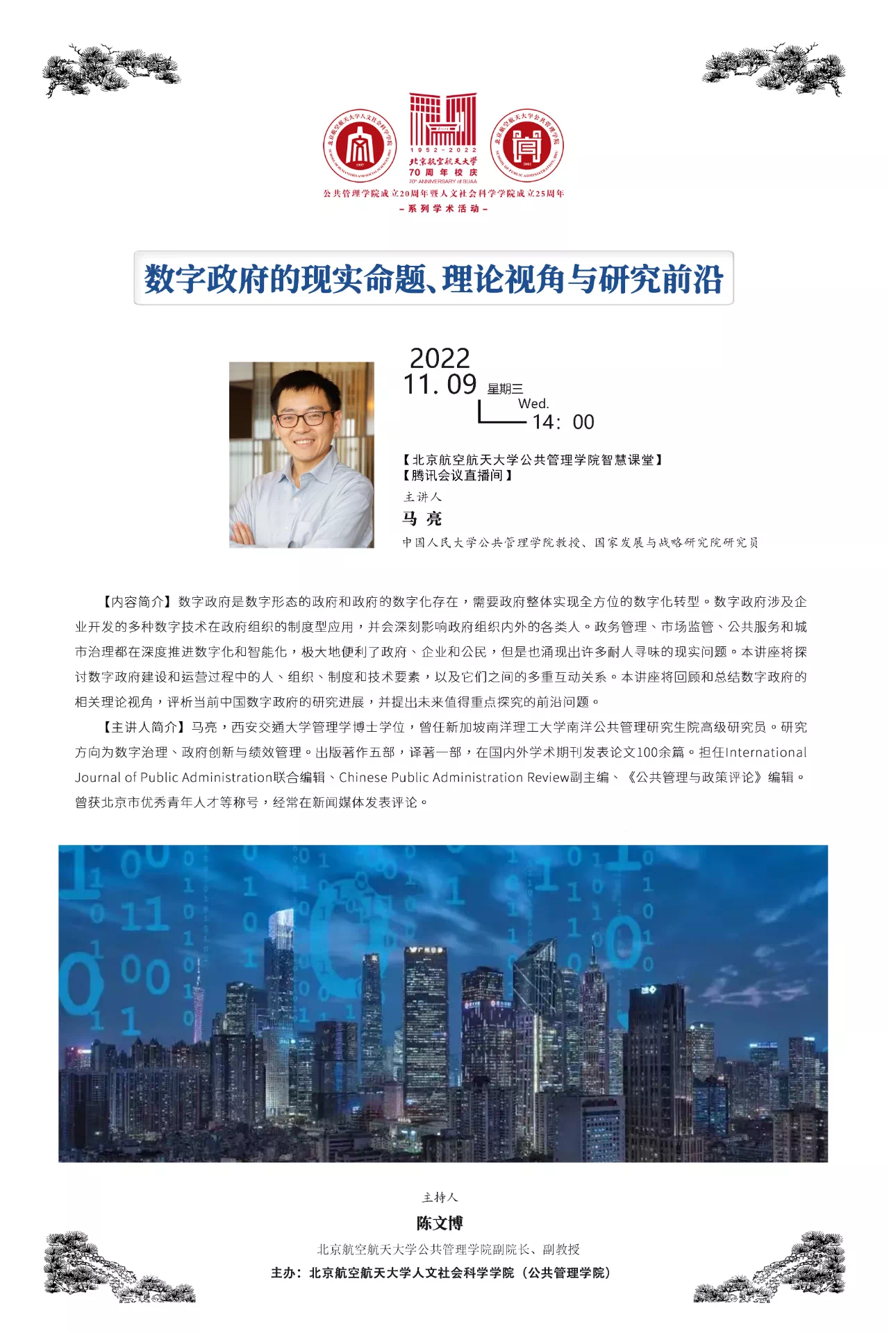 “北航故事”系列活动,夯实党建引领作用。深化专题学习,先后组织观看党的二十大开幕会直播、参观国家博物馆、“奋进新时代”主题成就展等活动;依托新生“开学第一课”等积极开展研究生思政教育;通过航空航天博物馆、校史馆参观等活动突出空天报国精神感知,培养担当精神;拍摄“我在北京喜迎二十大”等宣传短片,丰富思政育人模式。