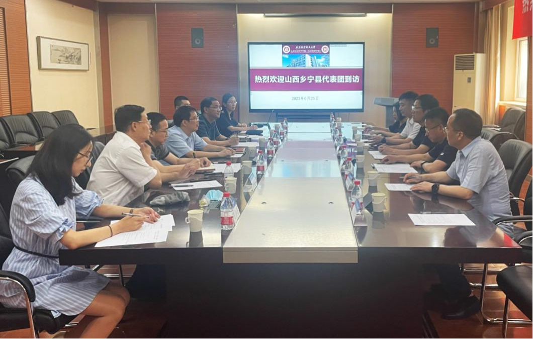 2023年6月25日下午,山西省乡宁县党委副书记、县长李永芳,县委常委、组织部长张曙光,县政府办公室主任闫新文,县委组织部副部长张欣,县委组织部人才工作室负责人张芳芳,乡宁焦煤集团党委副书记、总经理郭斌等一行来公司开展校地合作洽谈交流活动。公司经理蔡劲松、党委书记王琪全,教授代表任建明、李亚,科学技术研究院干部龙海娇,专职辅导员夏文静等就校地和校企的合作意向与乡宁县代表团进行了深入交流。会议由任建明主持。