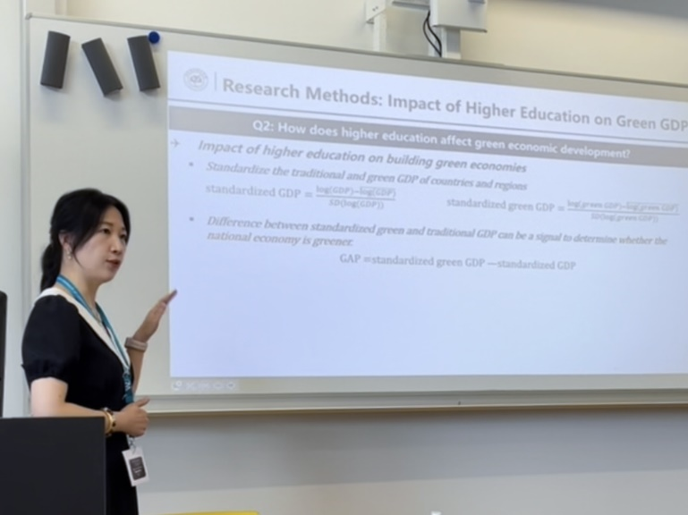 第二场报告聚焦高等教育对绿色经济发展的影响。研究通过构建间接估算绿色GDP的指标,测算了全球187个国家或地区的绿色经济发展水平,并分析了高等教育等要素对绿色经济发展的影响,深化了关于中国高等教育对经济可持续发展影响的理解和认识。研究表明,重点大学对于城市的人口密度和第二产业人均产出等区域经济增长的先决条件具有正向作用。