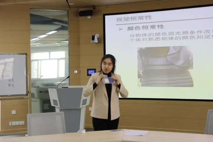 高雅玥老师以“视觉”为主题,从人工智能图像识别的错误应用引入,从眼睛的生理结构及其功能探究了人类视觉系统和大脑整体的工作机理,运用视觉恒常性原理讲解了一些生活中遇到的视觉差异,表明人类视觉系统的不可替代性和与人工智能发展的可能性。