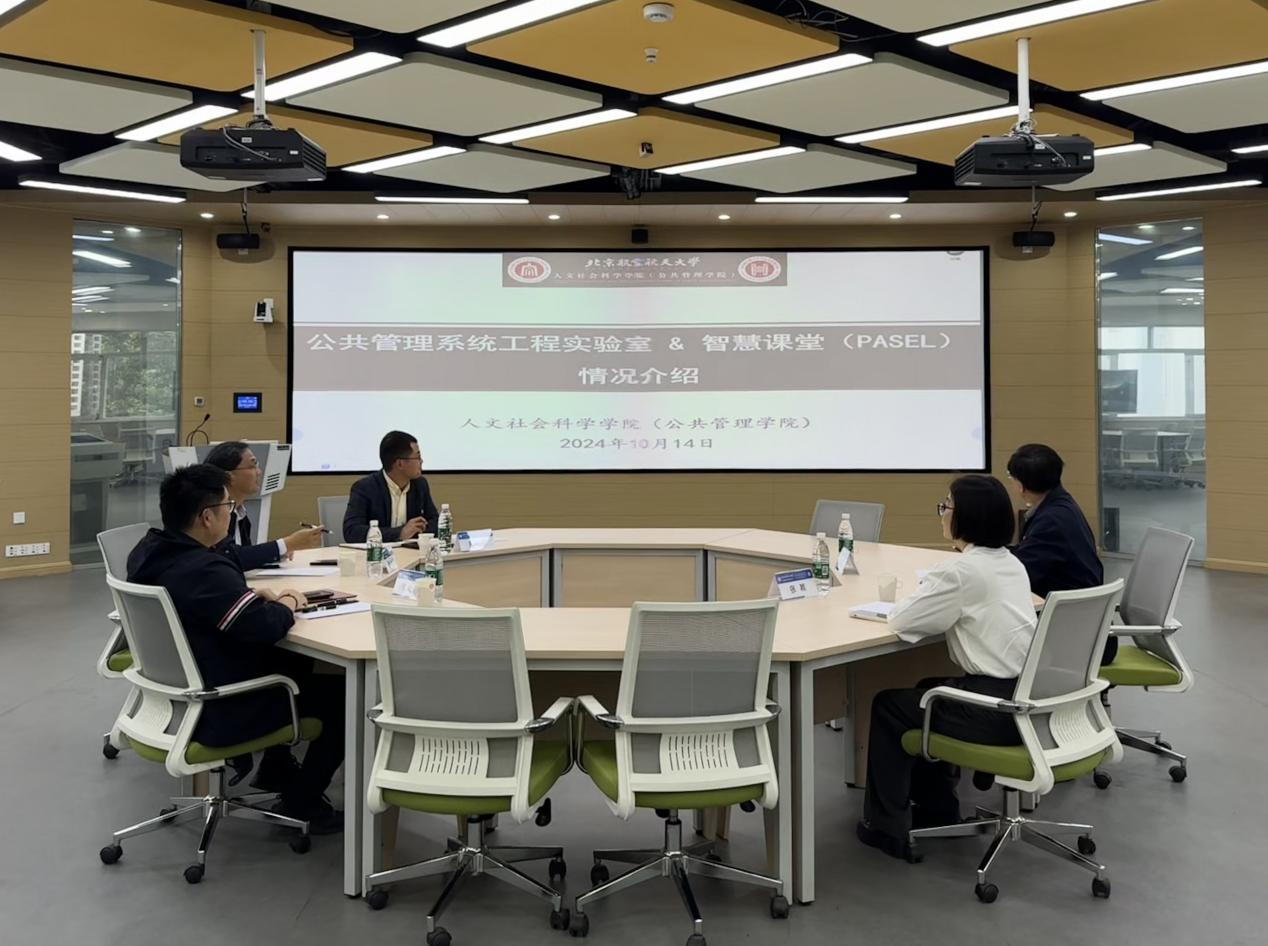 蔡劲松经理对王强经理和张颖副经理的到来表示热烈欢迎,并从公司团队建设、团队队伍及实验室建设等方面介绍了公司整体情况。随后,吴培熠老师介绍了公共管理系统工程实验室使用的基本情况。