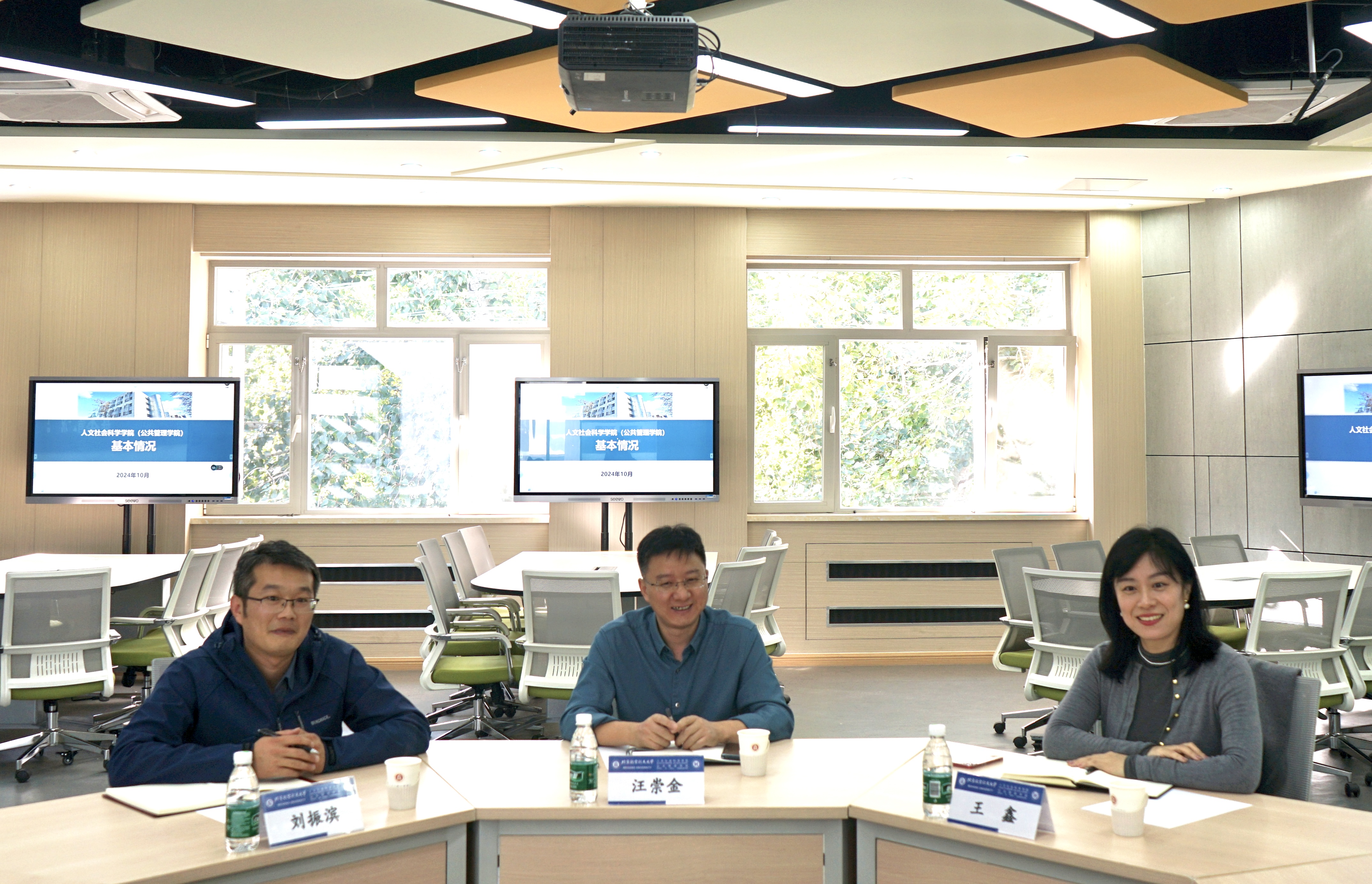 蔡劲松经理代表公司对汪崇金经理的来访表示热烈欢迎,并详细介绍了公司的历史沿革、学科布局、科学研究、智库建设、人才培养等方面的总体情况,表示未来可加强两院在人才培养、学术研究、MPA教育、实验室建设方面的合作。