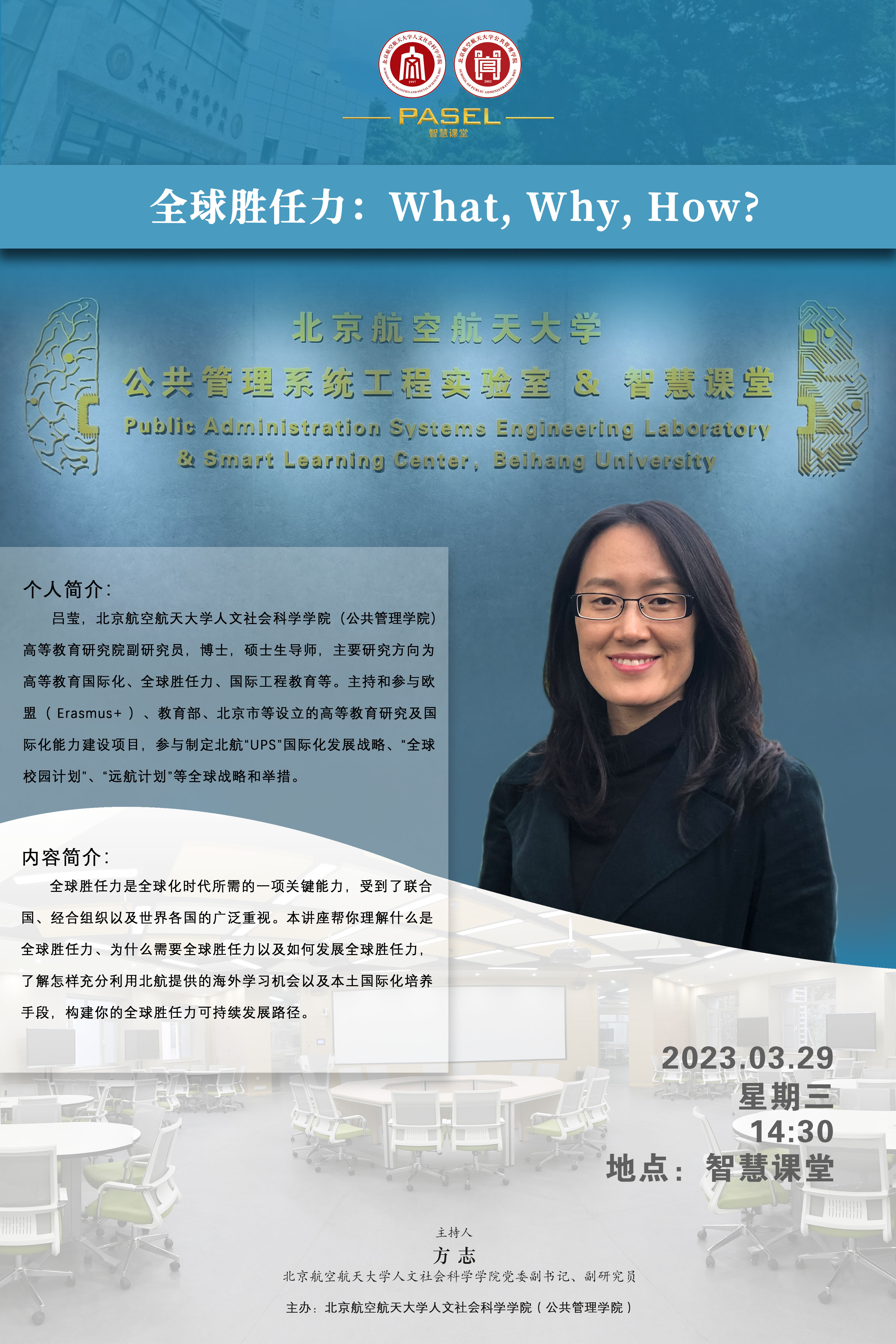 3月29日,“PASEL•智慧课堂”系列讲座在beet365智慧课堂举办。本次讲座由公司高等教育研究院副研究员吕莹老师主讲“全球胜任力——What, Why, How?”。公司党委副书记方志,教师代表黄文、张同玉以及40多位员工参加讲座,讲座由方志老师主持。