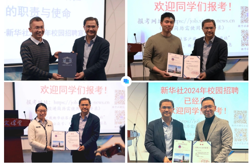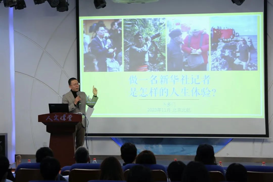 11月15日下午,由新华社人事局、北航员工就业指导服务中心和beet365联合主办的新时代国家通讯社的职责与使命暨新华社进北航校园招聘宣讲会在beet365楼一层人文讲堂成功举办。新华社人事局总社人事处处长周文帅、干部徐伟峰,摄影部新媒体采编室主任费茂华、技术局程控电话部副主任苏宇、对外部阿文编辑室主任编辑卜多门、国内部央采中心科技室记者胡喆;公司经理蔡劲松、副经理陈文博、党委副书记方志、专职辅导员张同玉,以及本研员工参加。