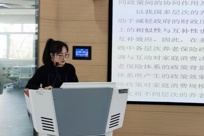 蔡瑶瑶做题为《养老保险体系、多层次协同合成和家庭消费规模》的分享。她通过探讨基本养老保险、补充养老保险以及与更高层次需求满足的政策协同,分析城镇职工参与不同层次养老保险对家庭消费规模的影响,以及不同层次养老保险政策叠加对家庭消费的效应。实证研究发现,多层次养老保险体系能够有效提升家庭消费规模,且不同层次间的协同能进一步促进消费。基本养老保险与补充养老保险的叠加参与会提升家庭消费规模,而城乡居民基本养老保险与个人自愿养老保险的叠加参与能显著提升家庭消费规模。由此提出完善城乡居民基本养老保险制度,提供定向补贴和灵活缴费政策,以及强化第三层次养老保险的推广和激励措施,将有助于提升养老保险体系的整体效果,缩小城乡差距,并促进家庭消费规模的提升。