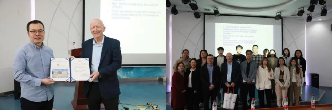 互动环节中,师生围绕行政负担的评估标准、跨国比较研究等议题踊跃提问,Christensen教授结合理论与实践逐一解答,现场学术氛围热烈。杨磊副教授代表公司向Christensen教授颁发“人文讲堂”荣誉证书。