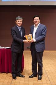 白韫六专员在讲座后给任建明教授赠送廉署纪念牌