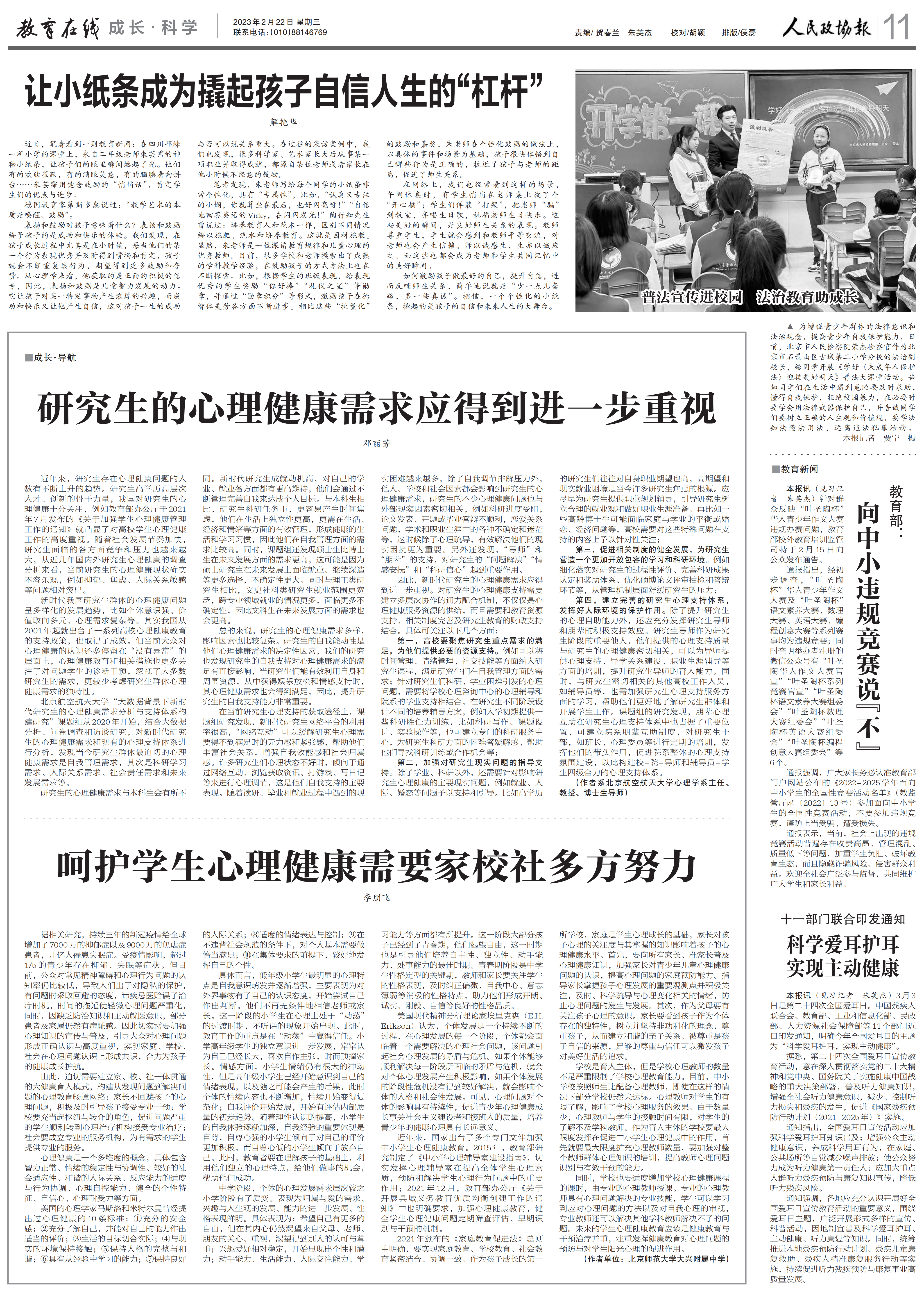 第三,促进相关制度的健全发展,为研究生营造一个更加开放包容的学习和科研环境。例如细化落实对研究生的过程性评价、完善科研成果认定和奖助体系、优化硕博论文评审抽检和答辩环节等,从管理机制层面舒缓研究生的压力;