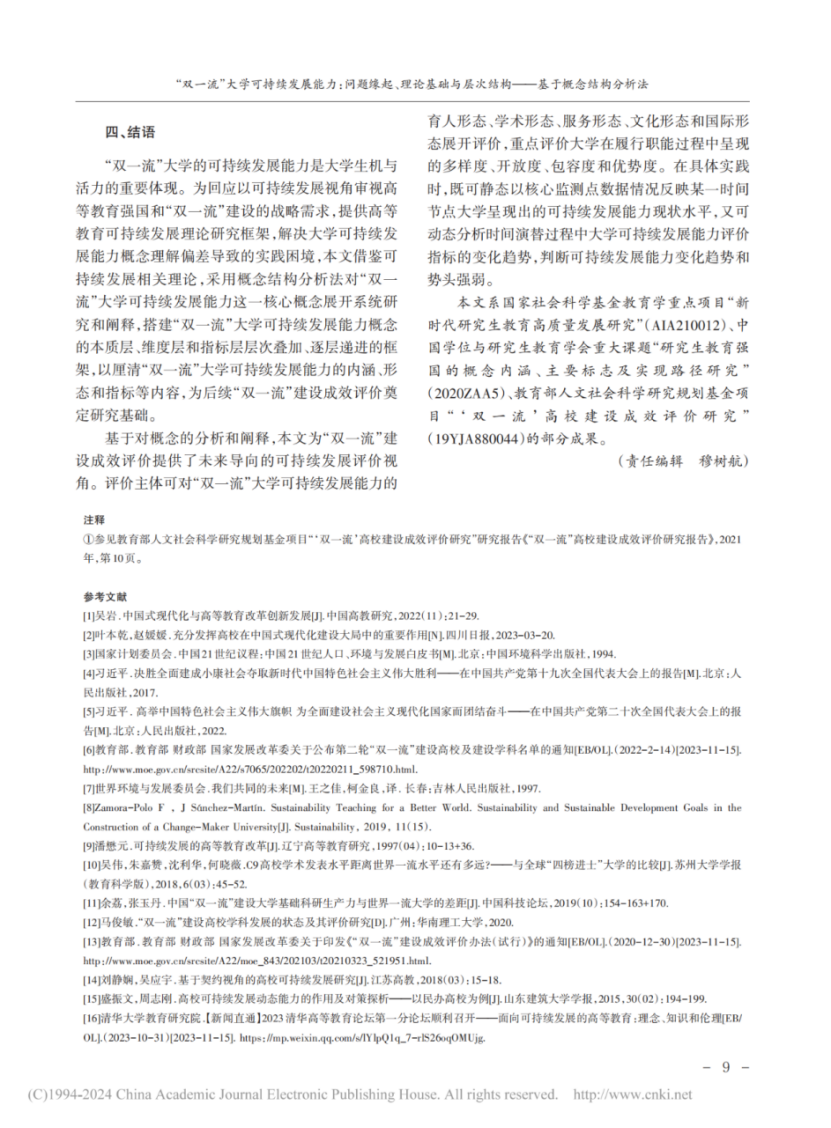 【关键词】高等教育强国;“双一流”建设;可持续发展;大学职能;概念结构分析法;