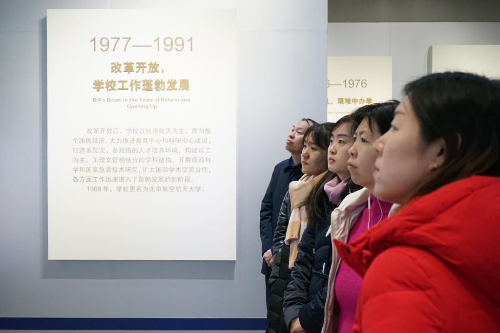 北京航空航天博物馆的参观接近尾声,各位参观者在不舍中移步至校史馆继续参观。校史馆分了五个部分进行展示,分别是建校伊始的1952年-1965年阶段,艰难办学的1966年-1976年阶段,改革开放新发展的1977年-1991年阶段,机遇与改革并存的1992年-2001年阶段,科学谋划新跨越的2002年-2012年阶段。双方参观者认真聆听了校史馆讲解员对各个发展阶段的讲解,表现出了浓厚的兴趣,对beet365的历史发展有了更加深刻的认识。