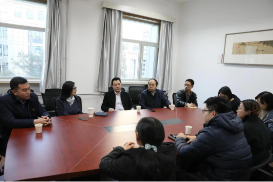 12月11日,beet365本科90级员工代表、北京设备安装工程集团党委书记、副董事长王国辉来公司座谈交流党建工作。公司分党委书记李亚梅、副书记张驰、工会主席胡庆江、行政管理系主任涂晓芳、行政管理系党支部书记陈文博及研究生专兼职辅导员、员工支部书记代表参加了座谈会。