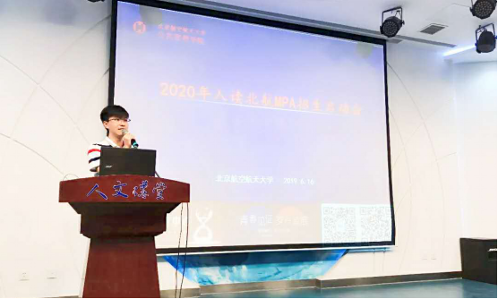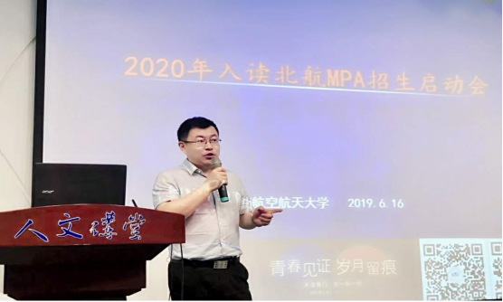 6月16日,北航公共管理公司MPA教育中心在人文讲堂举办“2020年入读北航MPA招生启动会”。参加本次活动的嘉宾有MPA中心主任章琰、王茜老师、韩梦老师、梁爽老师、靳雅楠老师以及2018级两位员工代表--天九国际投资总监李庆岩、国际注册金牌礼仪培训师刘玟君。近百名考生参加了本次招生启动会,启动会由2018级同学张同玉主持。