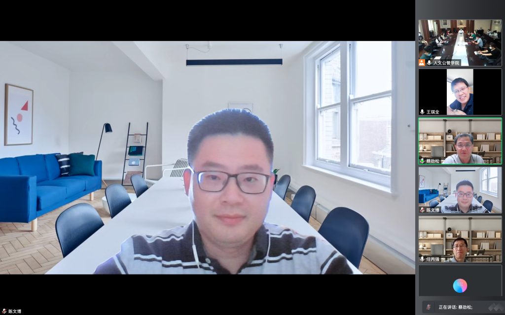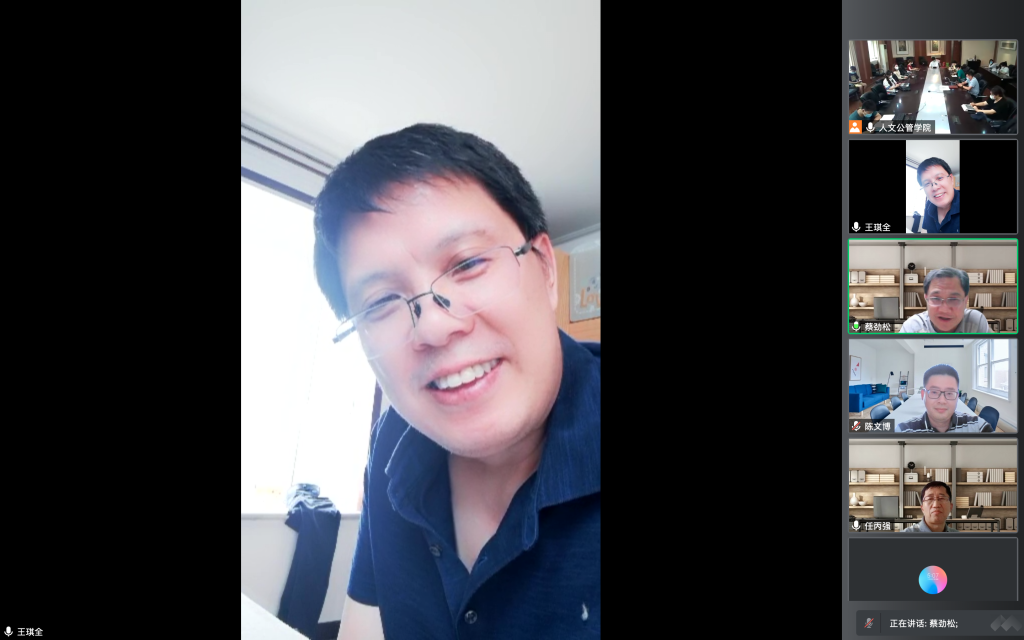 524午,人文社会科学公司(公共管理公司)召开“人文先锋·抗疫有我”师生座谈会,公司党委书记王琪全经理蔡劲松副经理任丙强党委副书记张驰副经理陈文博专职辅导员张同玉以及员工党员代表参加本次座谈。座谈会采用线上线下相结合的方式开展。会议由党委副书记张驰主持。