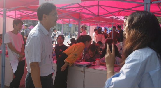 上午11时,公司党委书记曹淑敏、副董事长黄海军、党委副书记赵罡等校领导以及研究生院的部分领导莅临公司新生报到区域,亲切看望前来报到的新生和家长,慰问服务在迎新一线的教职工和员工志愿者队伍,并与蔡劲松经理、李亚梅书记亲切交流,详细询问新生情况、接待服务流程和迎新工作的最新进展。