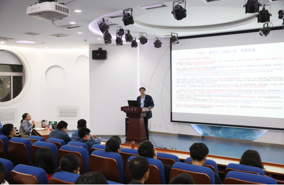 蔡劲松经理指出,十九大以来,基于满足人民日益增长的美好生活需要、推进人类命运共同体建设的愿景,将文化建设与经济建设、政治建设、社会建设、生态文明建设相并列,共同构成“五位一体”总体布局,并从提高国家文化软实力的高度,对文化管理体制改革、公共文化服务体系、文化创意产业、文化传播交流等方面,作出了战略部署和路径安排。随后,他通过几个案例生动讲述了借助现代传媒、科研设备,传统文化在新时代焕发了新的活力和生机。故宫文物揭下神秘面纱、与大众近距离接触;《中国诗词大会》《朗读者》再度燃起国学热、文化热;浙江乌镇探索出当代元素与传统乡村碰撞融合的可能性;新媒体技术使中国传统绘画的艺术神韵立体呈现,让在场师生直观感受到了新传媒与新技术带给传统文化的新魅力。