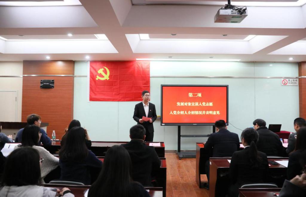 王宇航按照党组织接收预备党员的程序报告了到会党员人数。随后,全体与会人员起立奏唱《国际歌》。根据会议议程,经支部委员会审查、公司分党委预审后的五名发展对象依次宣读入党志愿,汇报个人基本情况、对党的认识、入党动机等。入党介绍人分别介绍了发展对象在思想、学习、工作等方面的表现并表明了介绍意见。支部组织委员王舒代表支委会向大会报告了对发展对象的审查情况,与会正式党员和预备党员对发展对象的现实表现逐一进行了充分讨论。