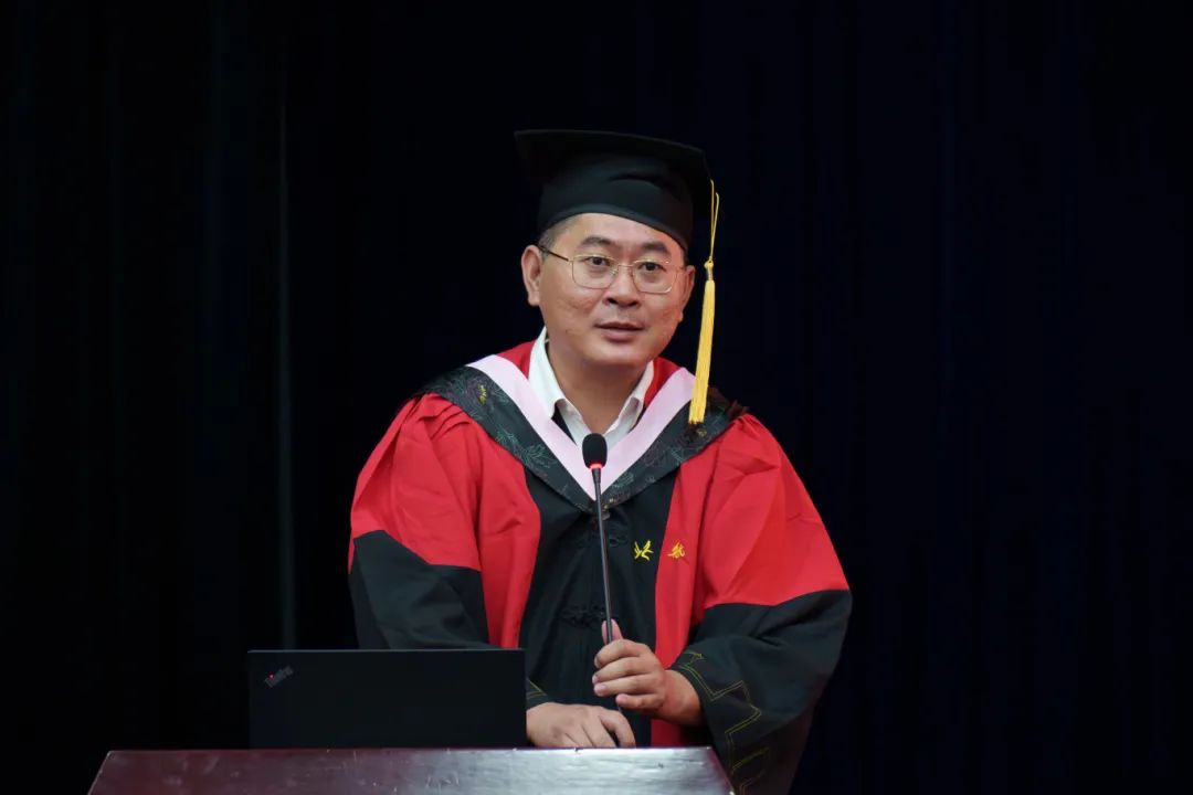 教师代表李健教授用“专业、底线、包容、奉献”四个词精简概括了在毕业之际想要向人文公管学子传达的人生阅历和经验。他叮嘱同学们未来无论身居何处,专业都是安身立命的根本;无论面对什么诱惑,都不能突破自己的原则和底线;无论面对什么事情,都不要包容自己的任性;奉献永不过时,人性最根本的就是对别人有用,让自己快乐。最后,老师希冀人文公管学子们能在人生漫漫中行稳致远,常回beet365看看。