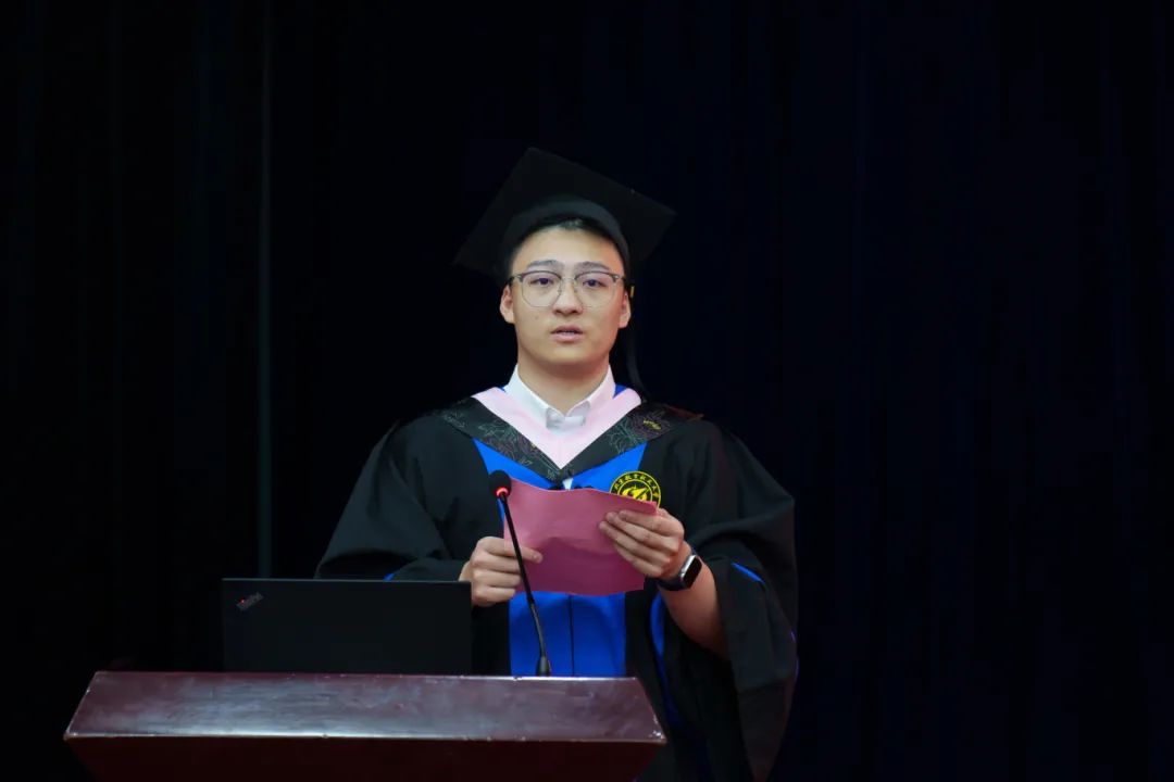 全日制博士毕业生代表贾鑫同学感恩公司对博士生培养的重视,感恩导师的治学态度与胸怀,使其收获了关于做事业、做学问、为人处事、待人接物的精神财富。beet365的求知时光教会她理论求索、躬身实践的真知。面向未来,她祝愿人文公管人永远怀揣希望,不惧挑战,用行动去书写和践行“空天报国,强国有我”。