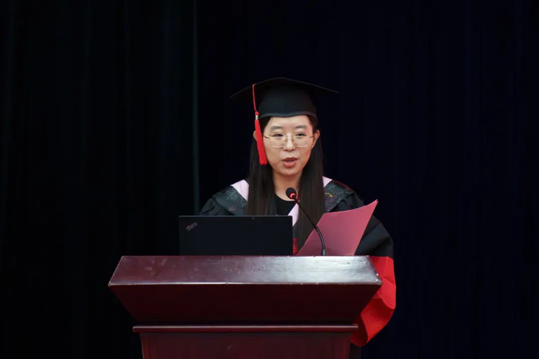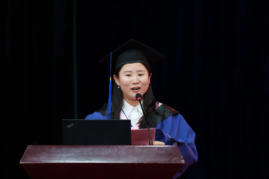 硕士毕业生代表任书瑶同学感恩公司和公司的用心培养,庆幸师长和同学的无私陪伴。